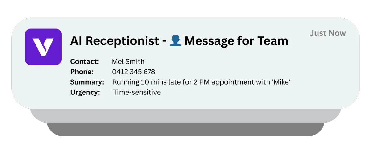 Your custom AI answers calls, replies to messages, handles enquiries, and helps manage appointments. All while you focus on what you do best. No more missed calls. No more ghosted leads. Just organisation and booked calendars